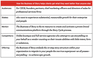 business storytelling, unique value proposition, brand strategy, marketing consulting, b2b marketing, brand building, professional services firms