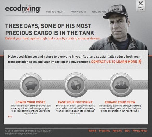 The new Ecodriving Solutions web-based training program for fleets of light and heavy duty vehicles is a no-nonsense approach to green marketing and sustainability. How else would you approach the independent and competitive mindset of a fleet truck driver, as well as the “Don’t waste my time and money” attitude of C-suite executives that need to approve this kind of green fleet initiative?